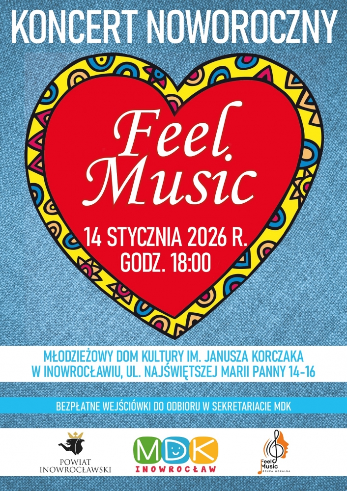 Młodzieżowy Dom Kultury im. Janusza Korczaka w Inowrocławiu zaprasza 14 stycznia na koncert, podczas którego wystąpi grupa Feel Music.