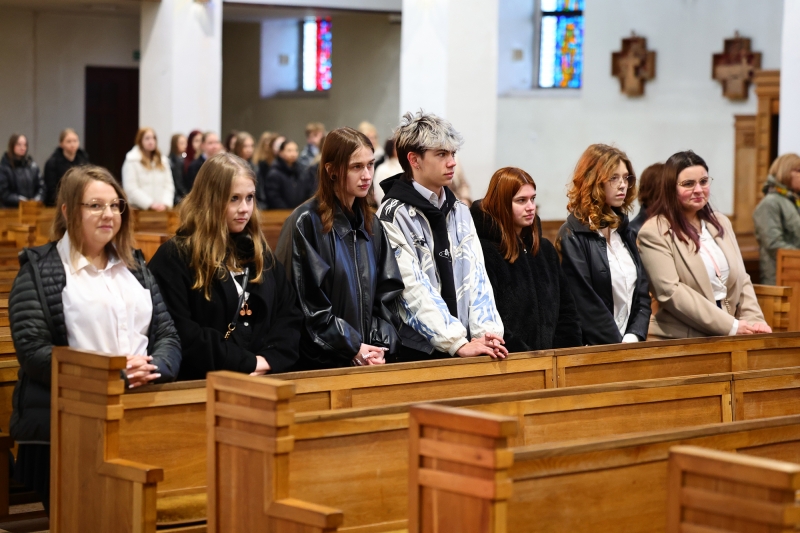 Sztandar poświęcił proboszcz Dariusz Macioszek. Młodzież złożyła ślubuwanie na sztandar szkoły.
