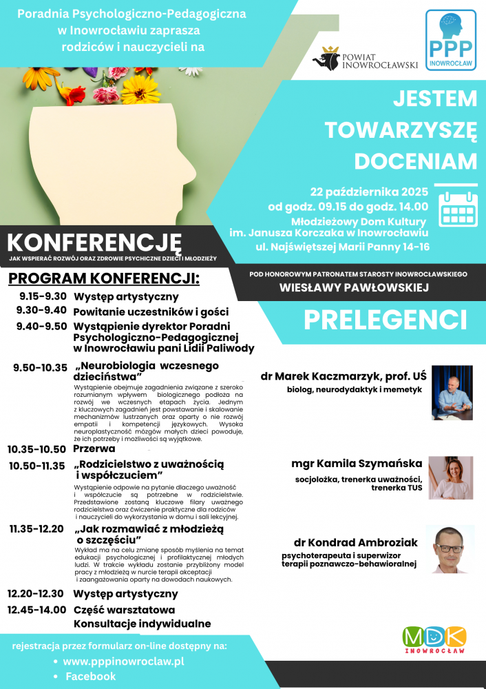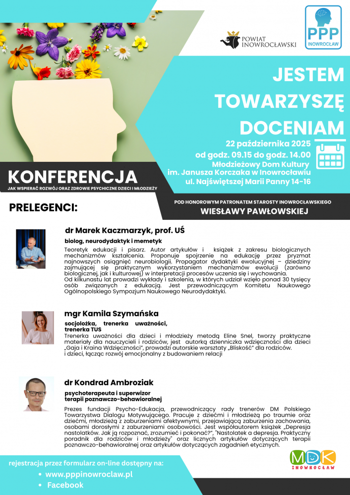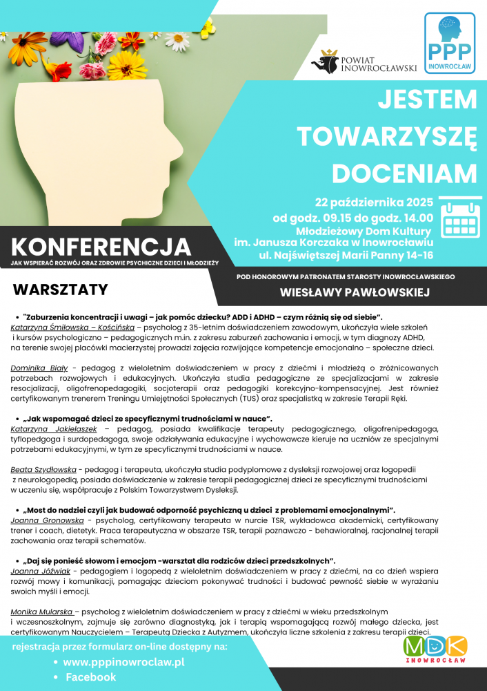 Konferencja o tym, jak wspierać rozwój oraz zdrowie psychiczne dzieci i młodzieży odbędzie się 22 października w Młodzieżowym Domu Kultury im. Janusza Korczaka w Inowrocławiu.